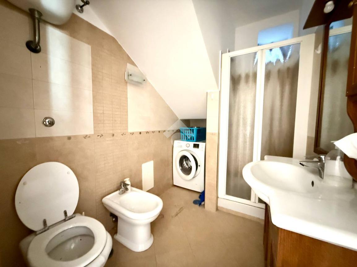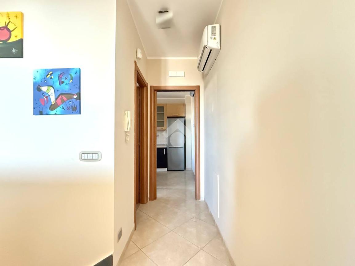 E' composto da un ingresso in disimpegno, cucina abitabile completamente arredata con tutti i comfort, ampio soggiorno con finestra vista mare, due camere da letto, due bagni entrambi finestrati e uno spazio esterno a livello.