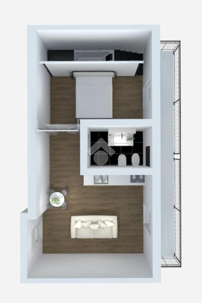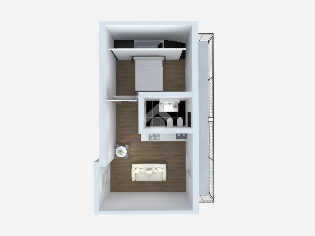 All'ingresso troviamo un'ampia zona living con angolo cottura molto luminosa grazie all'apertura sull'ampio balcone; a seguire vi è il bagno e la camera da letto matrimoniale caratterizzata da una vasca idromassaggio con luci a led.