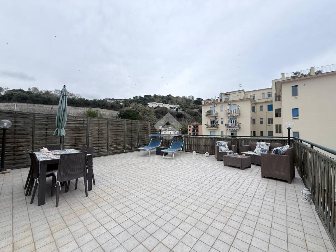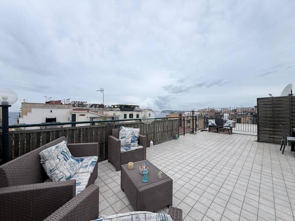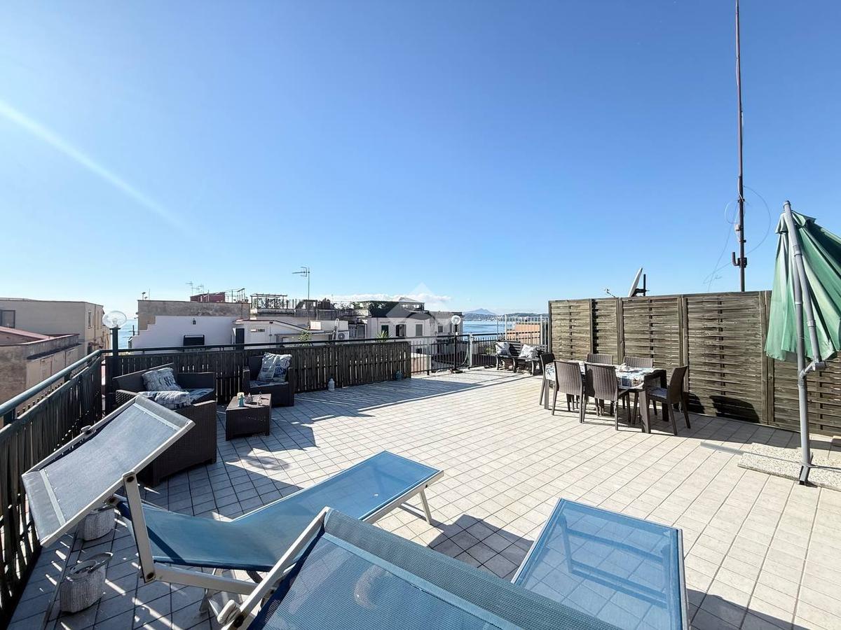 A completare la soluzione vi è un lastrico di copertura, pavimentato e attrezzato, da cui è possibile godere di una splendida vista sul mare e sul Rione Terra.
