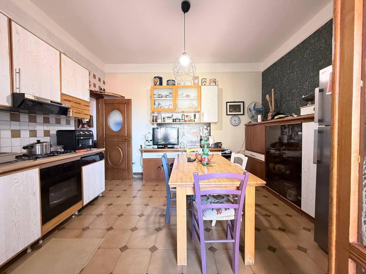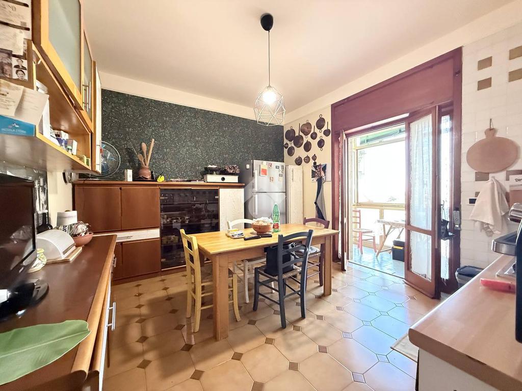 L'immobile è attuale così suddiviso: vi è un ingresso in ampio disimpegno, un salone doppio luminoso con balcone con affaccio libero e parzialmente panoramico; una cucina abitabile luminosa con balcone; tre camere da letto ampie dotate di punto luce, un bagno con vasca e finestra.