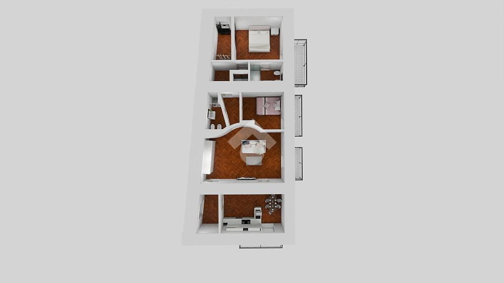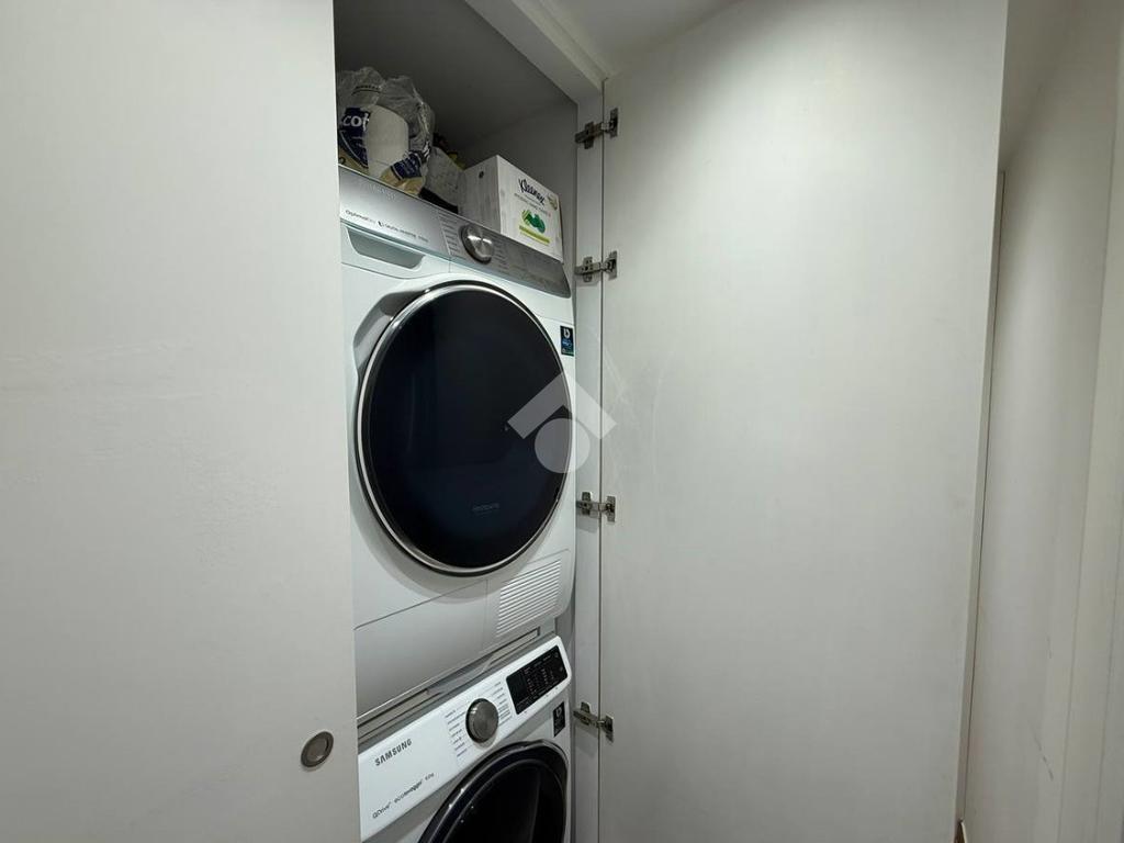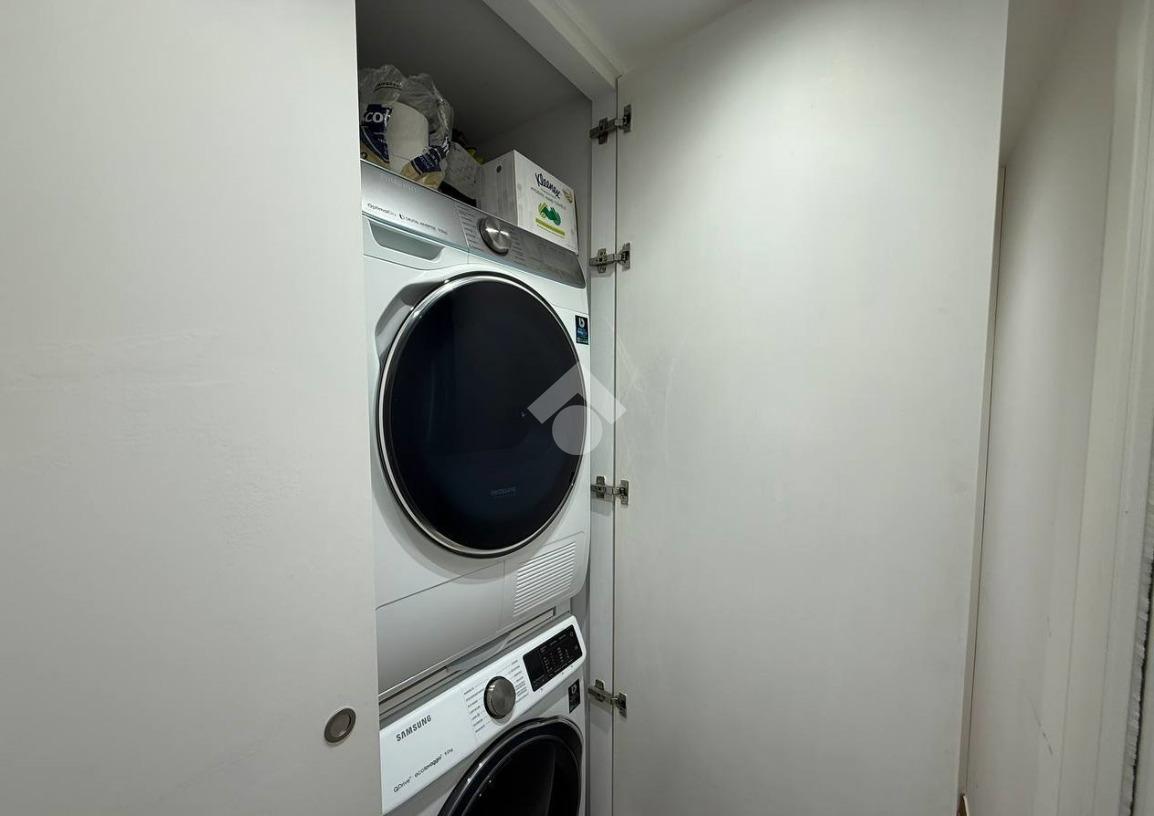 A seguire vi è una cucina abitabile anch'essa dotata di accesso al balcone; un corridoio, con armadio su misura dove c'è la zona lavanderia, ci conduce poi alla zona notte la quale è composta da due ampie camere da letto, una matrimoniale con cabina armadio e bagno en suite e una cameretta luminosa con balcone.