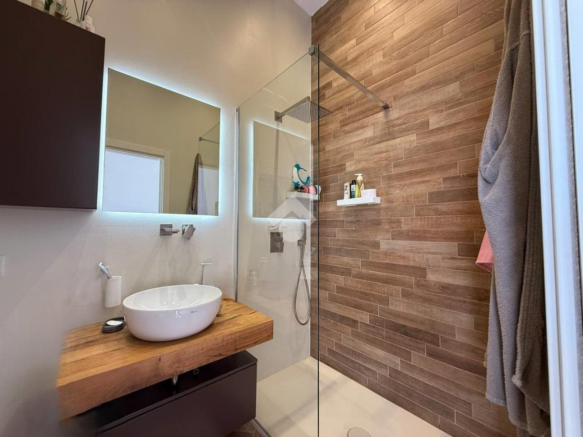 La soluzione è dotata di doppi servizi; entrambi con cabina doccia walk in, moderni e funzionali con termoarredo.