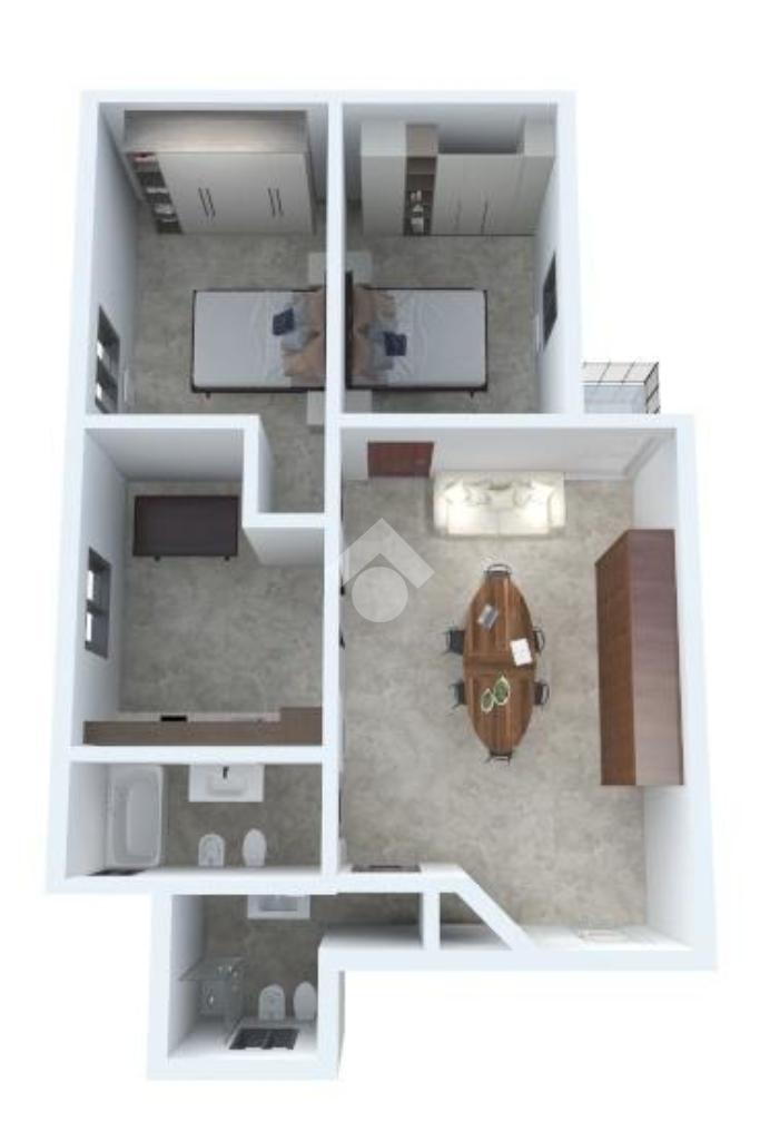 L'immobile è composto da un ingresso in ampio soggiorno luminoso con balcone, due camere da letto luminose con finestre, cucina abitabile, doppi servizi muniti di doccia e vasca.