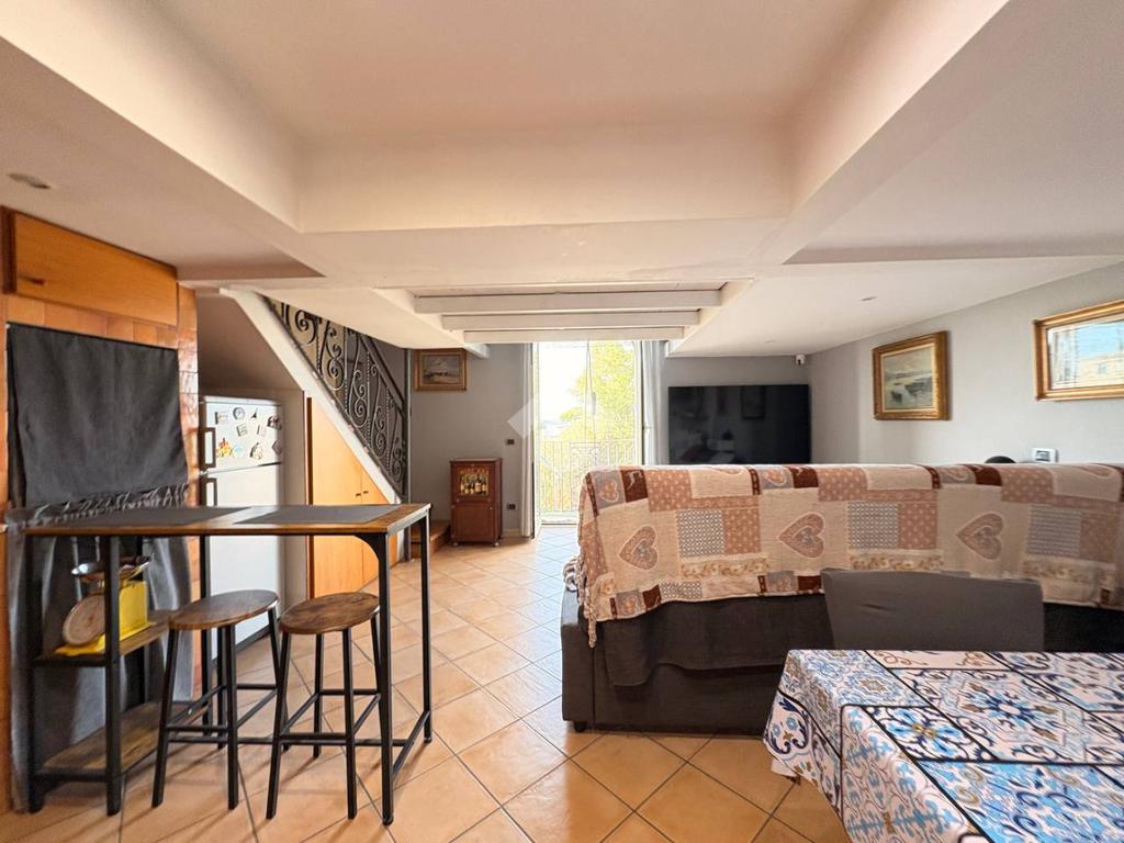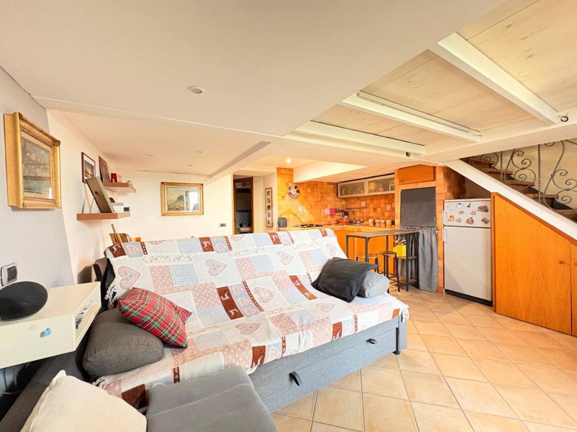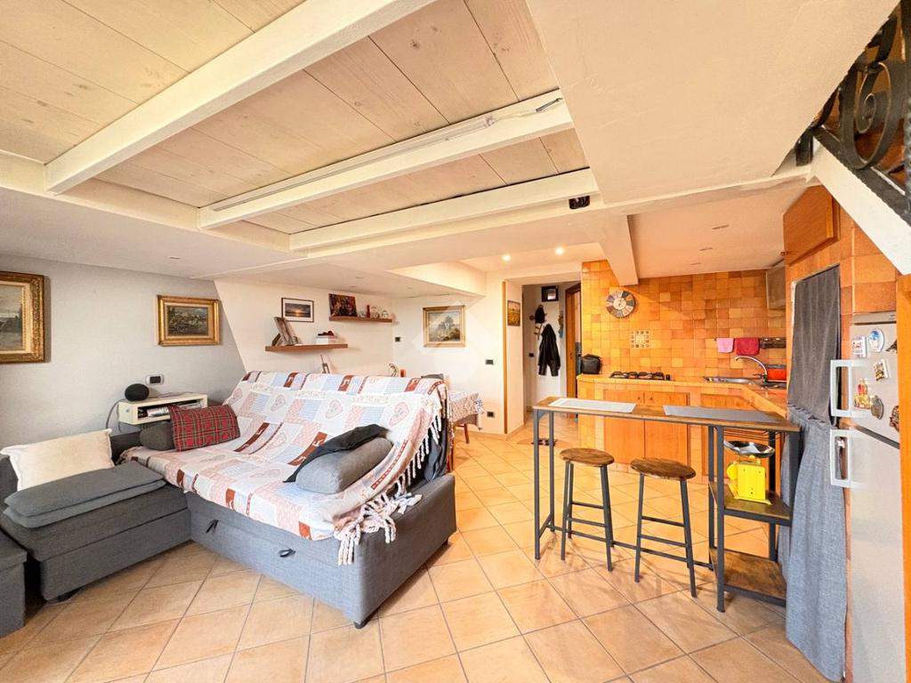 - Al primo livello vi è una zona living ampia con angolo cottura e balcone, con affaccio libero e panoramico, ed un bagno munito di doccia e finestra.