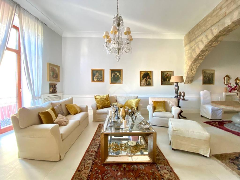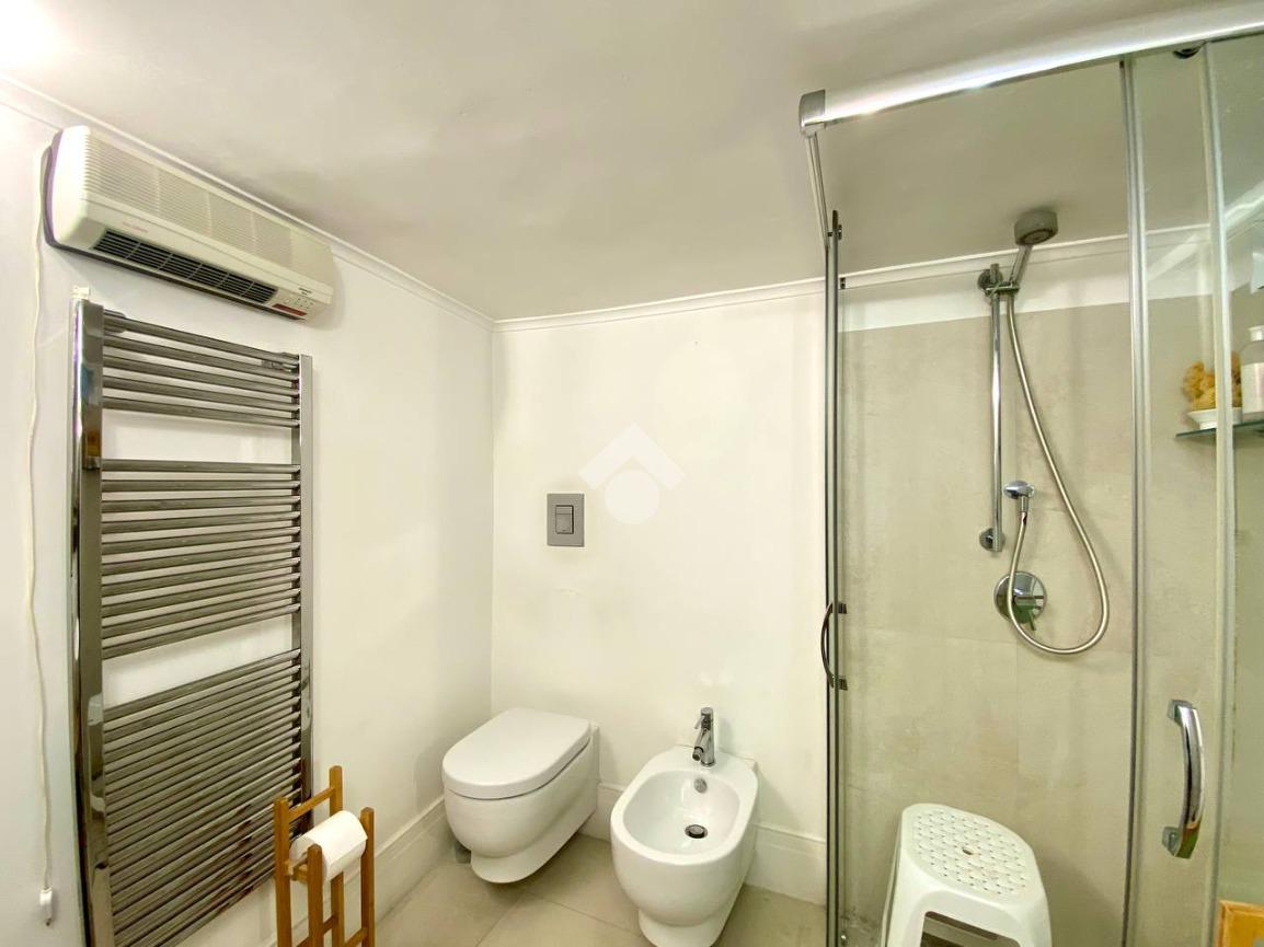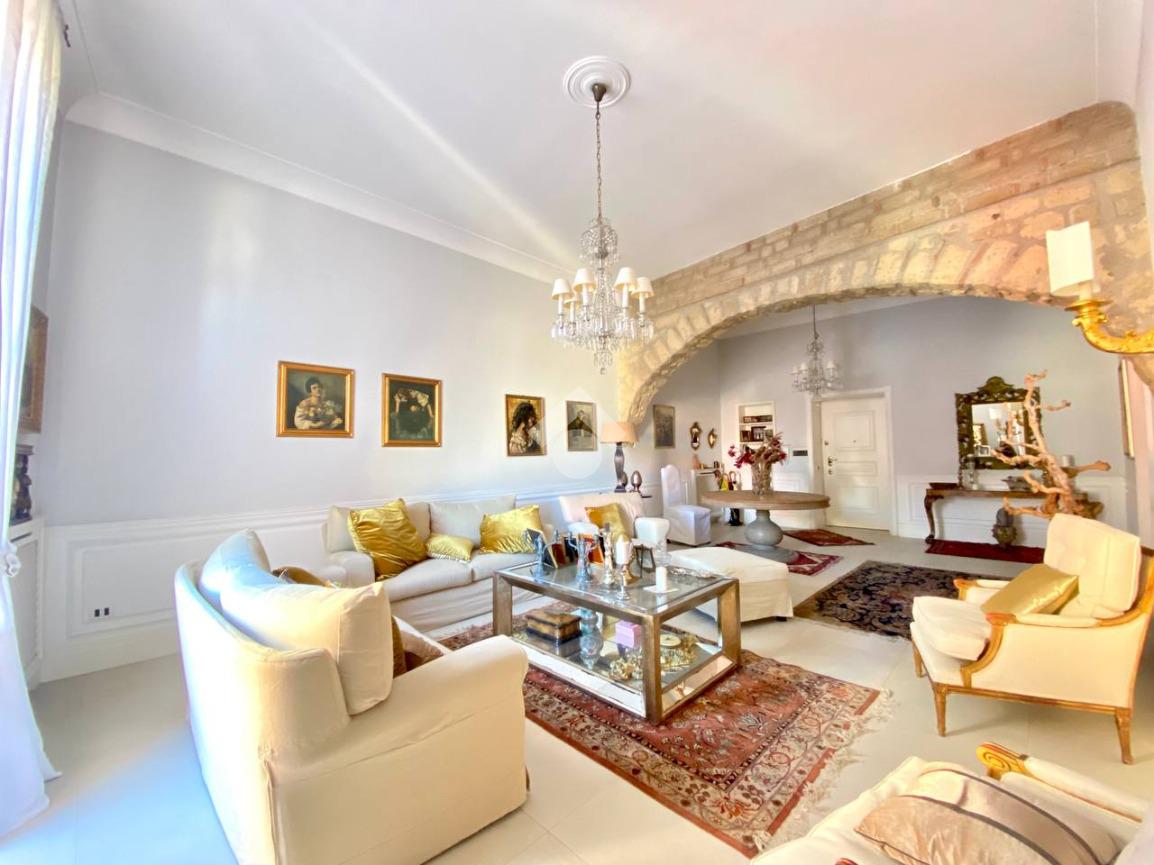 Al primo livello troviamo un ingresso in ampio soggiorno doppio, luminoso, con un primo balcone con affaccio sul centralissimo Corso della Repubblica ed un primo bagno, ristrutturato, con cabina doccia walk-in e termoarredo.