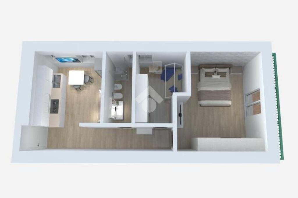 L'immobile si presenta in ottimo stato interno; ci accoglie all'ingresso una deliziona zona living con angolo cottura e finestra, segue un corridoio che ci conduce alla zona notte composta da due camere da letto; matrimoniale con balcone e cameretta con finestra; infine vi è un bagno dotato di cabina doccia e finestra.