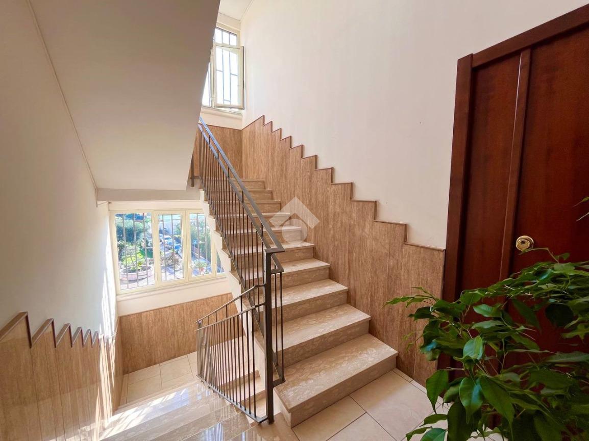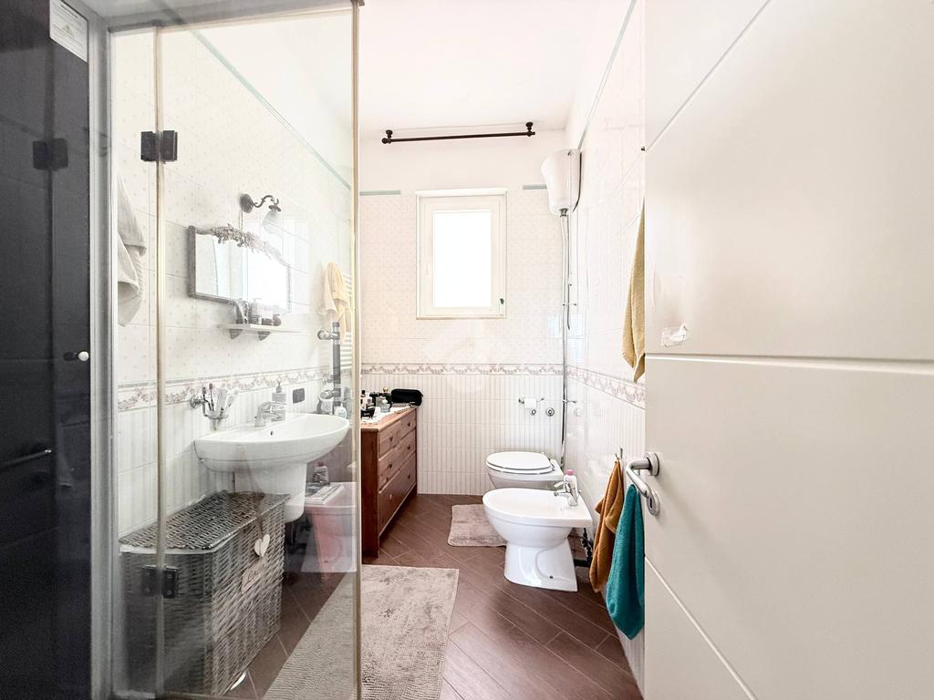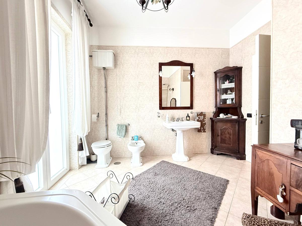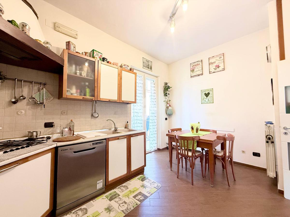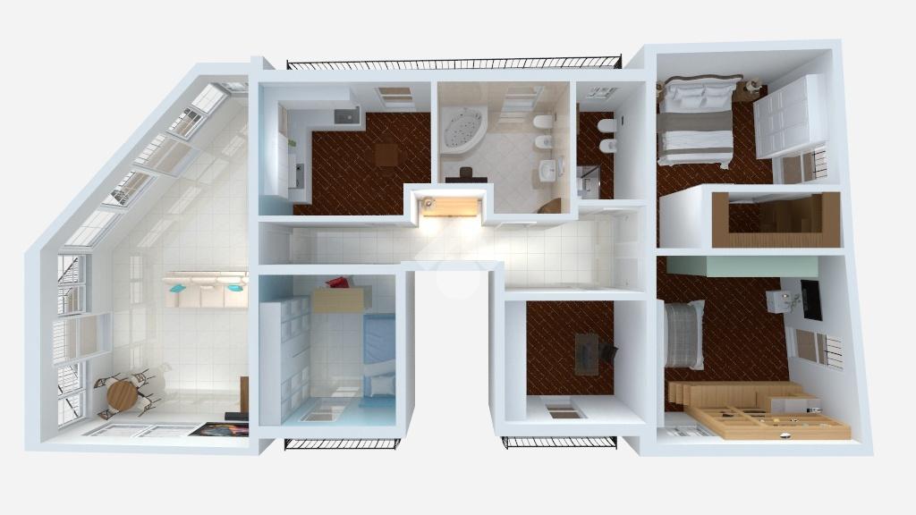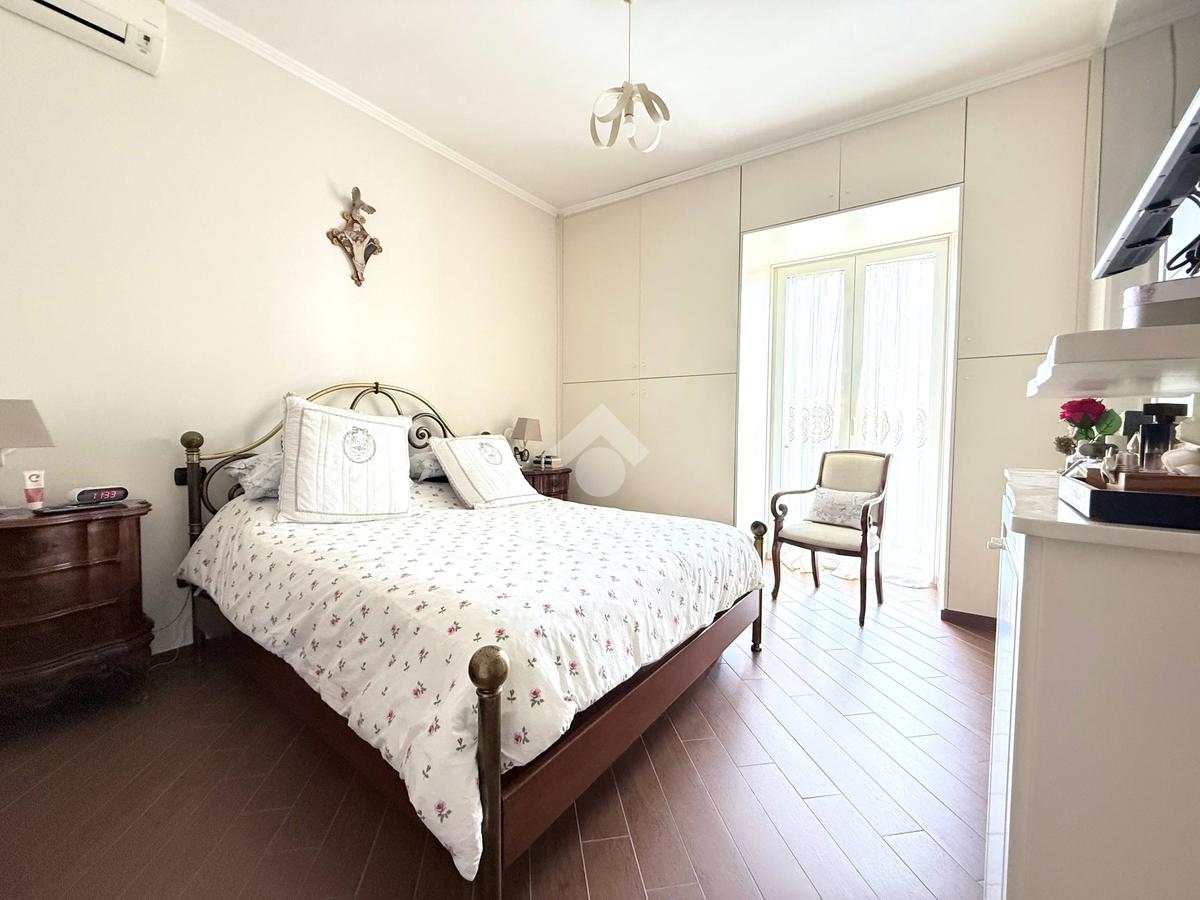 L'appartamento è dotato di ben tre camere da letto luminose, di cui una con cabina armadio e armadio su misura in muratura, uno studio con balcone panoramico, cucina abitabile anch'essa con balcone e doppio servizio con punto luce.