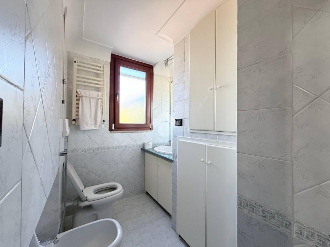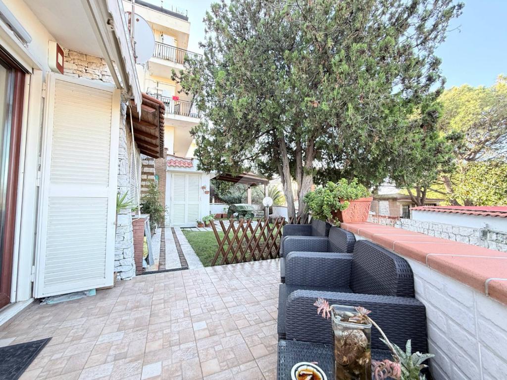 Esternamente vi è una superficie di 125 mq con spazio esterno pavimentato e giardino dal quale è possibile godere di una splendida vista mare.